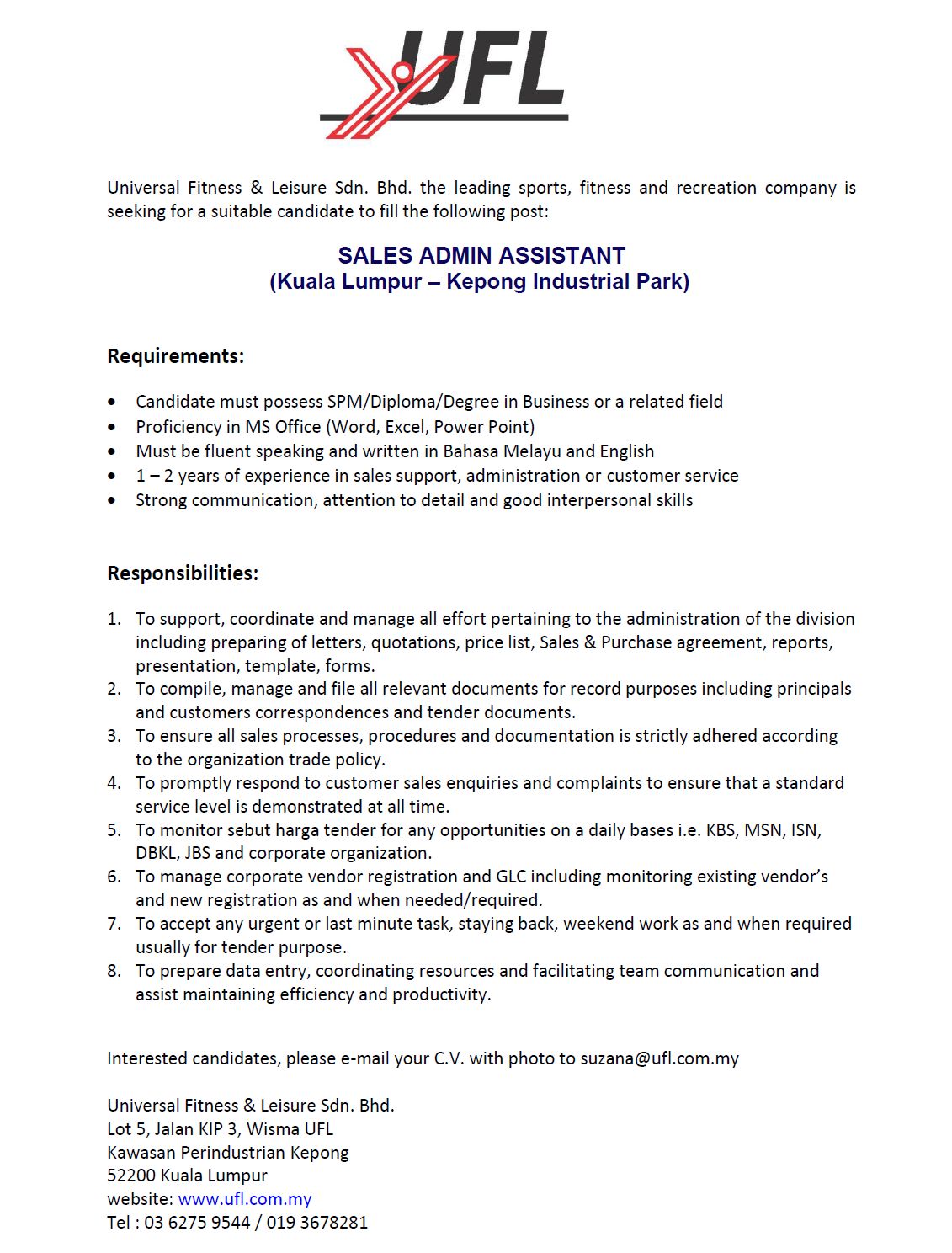 Interested candidates, please e-mail your C.V. with photo to suzana@ufl.com.my