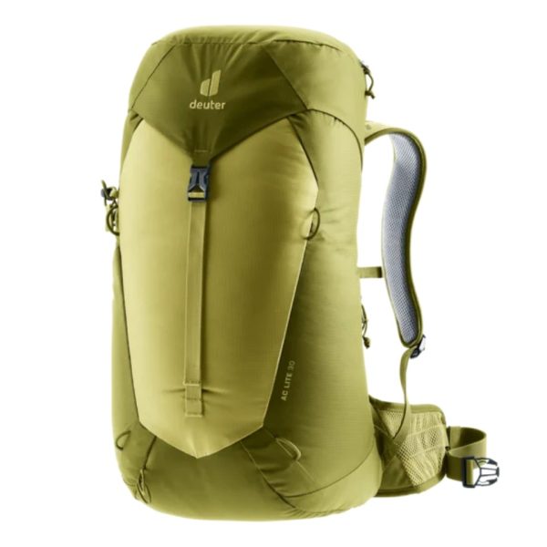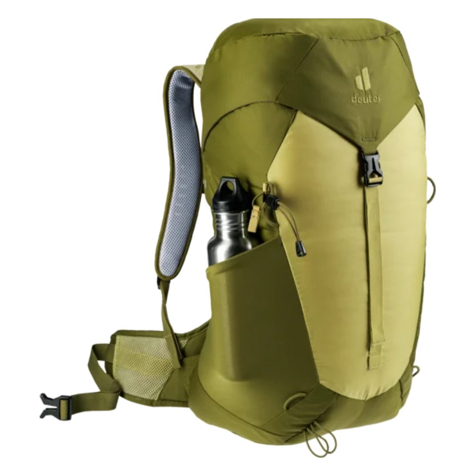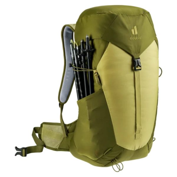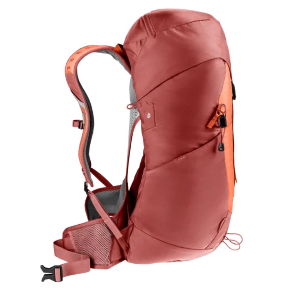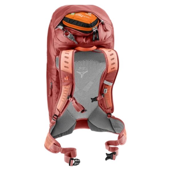 This comfortable day pack features the ultra-light deuter Aircomfort back system with maximum ventilation and offers an excellent comfort-to-weight ratio. It has a spacious main compartment and dedicated cell phone pocket, stretch side pockets, lid compartments and gear loops to strap poles and a range of gear to the outside of the pack. Prepped to accommodate a mesh helmet holder and hydration system (up to 3 L) and comes with a detachable rain cover.
