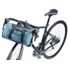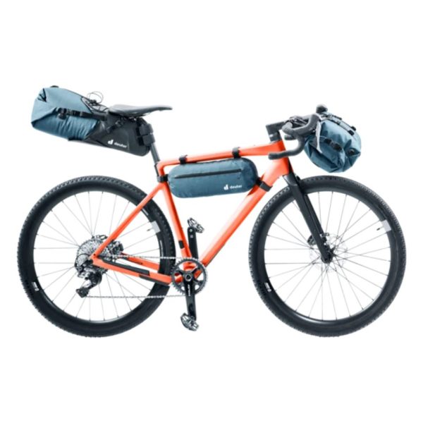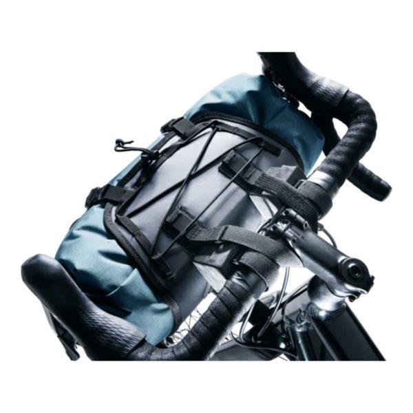 The two-piece construction of this handlebar pack for globetrotting bikepackers, is made up of a lightweight, waterproof dry bag with roll-top closure at both ends, and a harness made from durable materials with a bungee cord and gear loops on the top that makes loading and unloading quick and easy during short rest breaks, because the dry bag can be detached while the harness stays on the bike. The durable straps on these bike bags feature hook and loop fasteners for secure positioning, and the spacers make it possible to mount them on a variety of frame sizes and tube diameters, including carbon bikes.