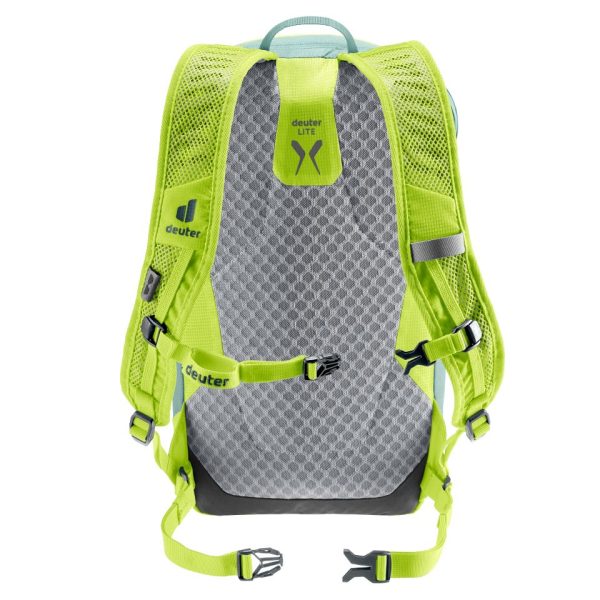 This pack is speedy, light and sustainable thanks to deuter’s Lite back system, ergonomic, perforated shoulder straps, a detachable waist belt, precision-adjustable sternum strap and 100% recycled, bluesign® certified body fabric. Designed for fast-paced hiking, side compression straps effectively reduce load wobble and enable full range of movement. This helps save energy over longer distances too.